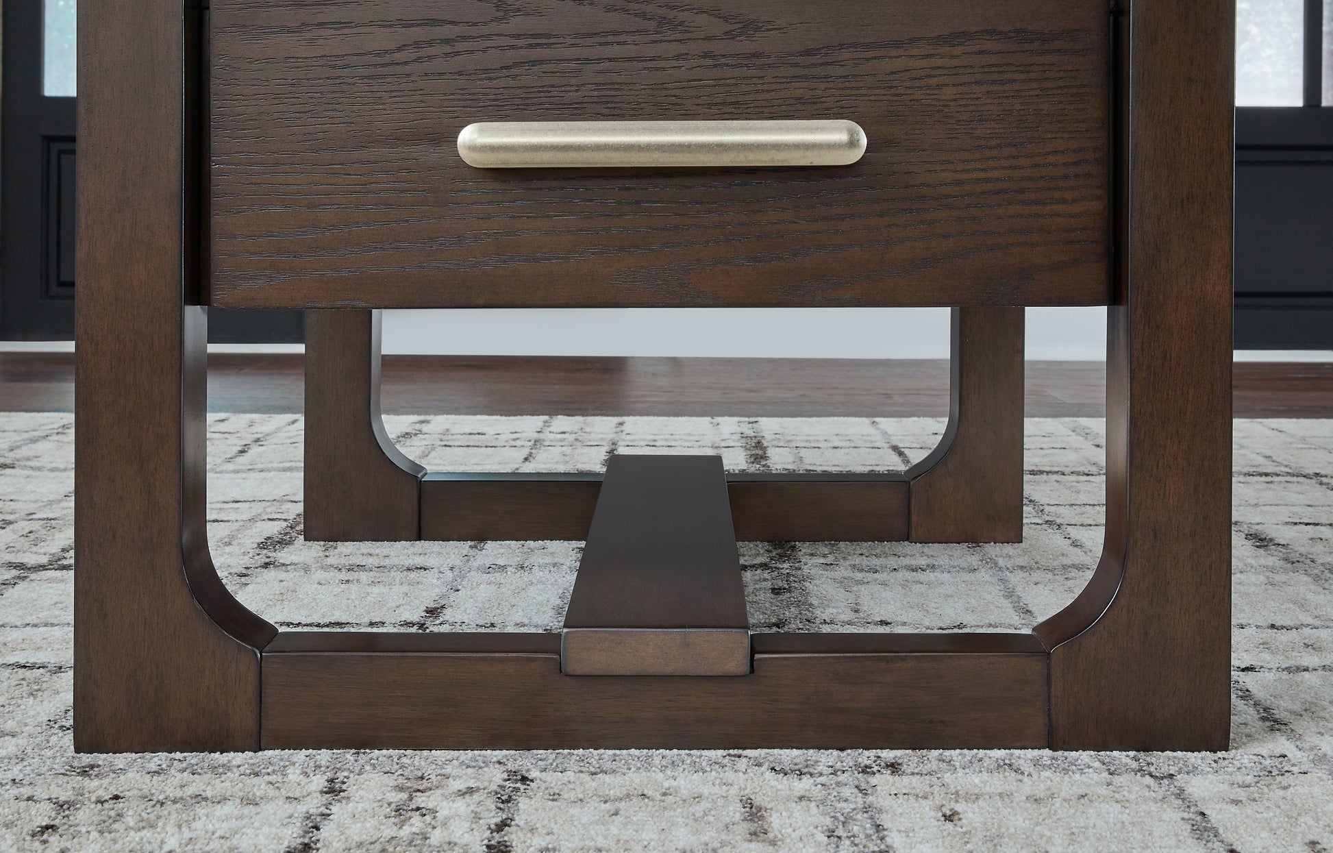 | Details | Made with hardwood solids, hickory veneer and MDF substrate, Dark brown wood-tone finish, Bar pull with polished pewter-tone finish, Single smooth-gliding drawer, Assembly required | |