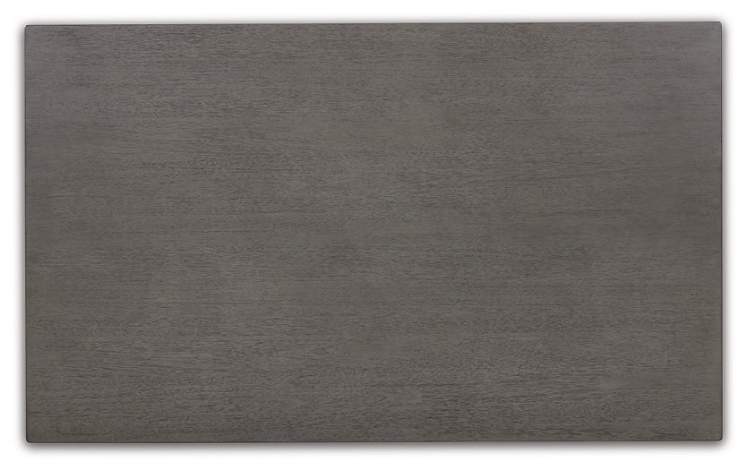 | Details | Includes counter height dining table and 6 counter height bar stools, Table made with hardwood solids, acacia veneer and MDF substrate, Stools made with solid hardwood frames, Antiqued gray wash finish, Polyester upholstery, Foam cushioned seats, Nailhead accents, Assembly required | |
