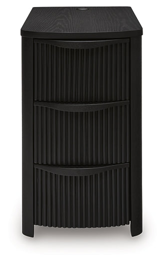 | Details | Made with hardwood solids, veneers and engineered wood, Rich black wood grain finish, Integrated drawer handles, 3 curved-front drawers, USB-A and USB-C charging, Power cord included; UL Listed | |