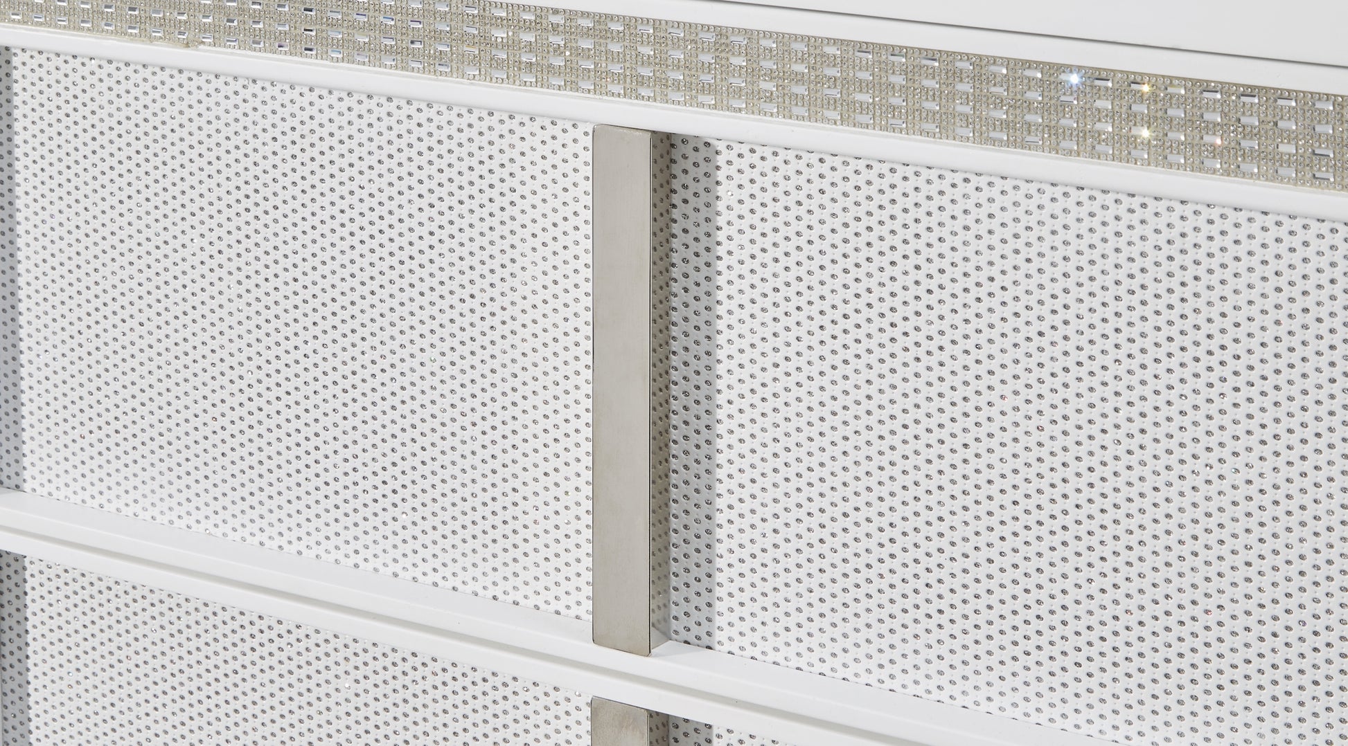 | Details | Made with solid wood components, MDF substrate and decorative laminate, White lacquer finish, Vertical metal drawer pulls, Built-in LED lighting with 3-way dimmer switch, 2 drawers with fully finished interior, dovetail construction and heavy duty ball-bearing side glides, Drawers with rhinestone frames; textured laminate drawer fronts, 110V power supply with USB-A and USB-C charging ports, Power cord included; UL Listed | |