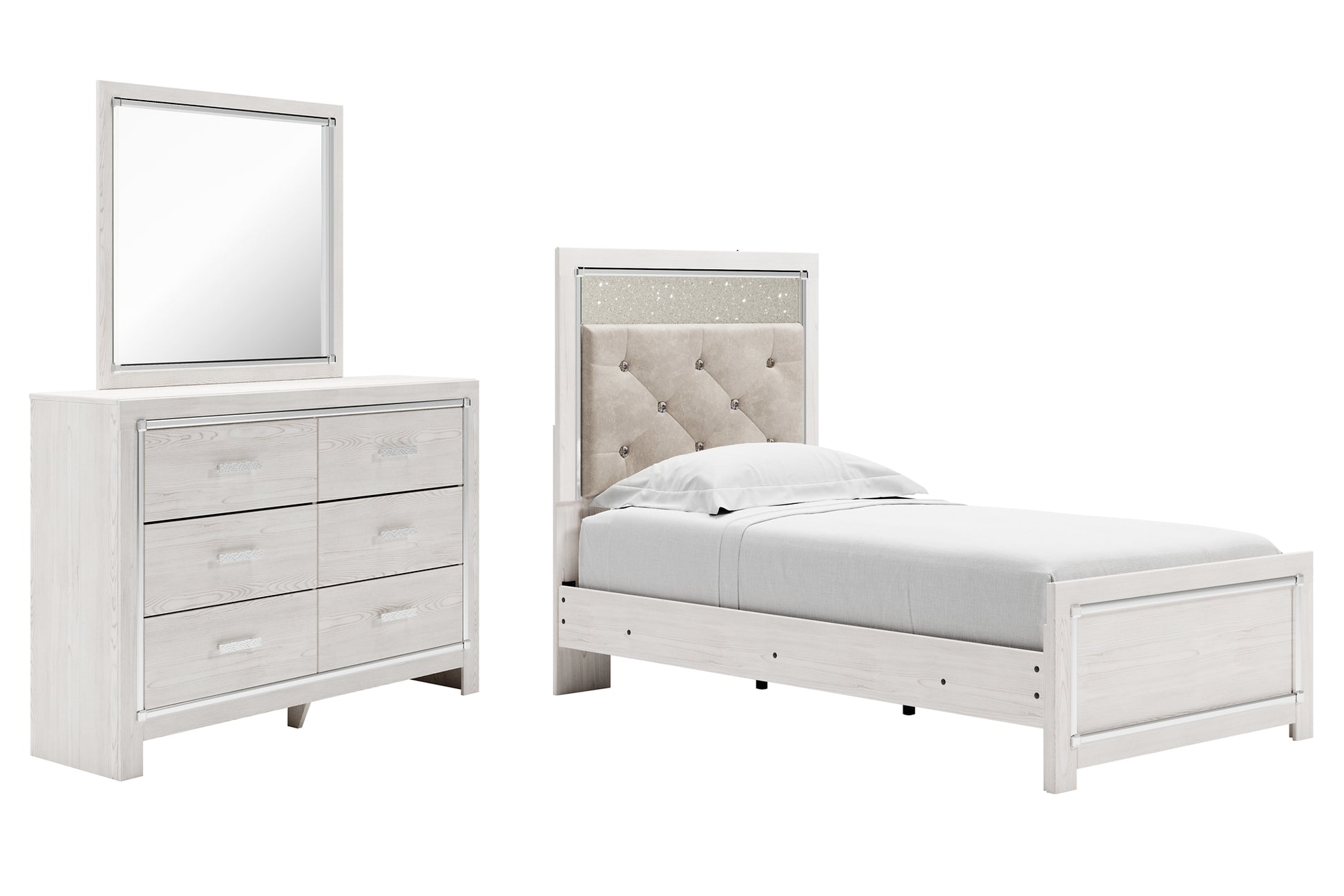 Aleaport Twin Panel Bed with Mirrored Dresser and Nightstand